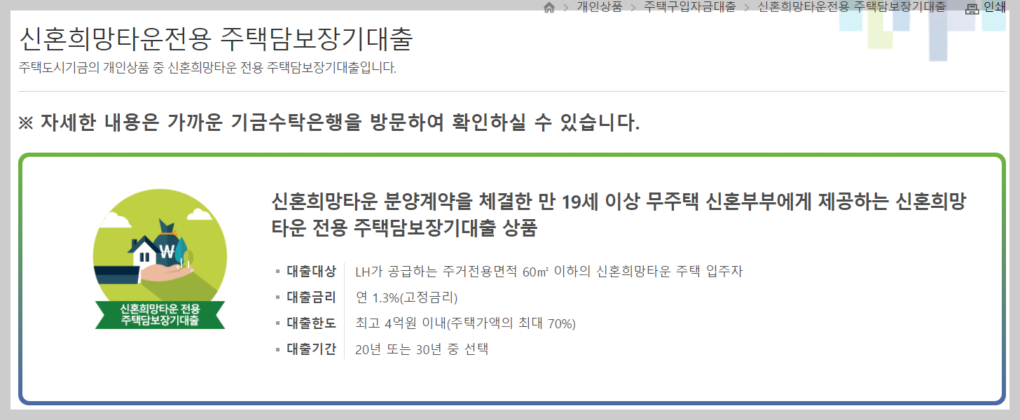신혼희망타운전용 주택담보장기대출은 신혼희망타운 분양계약을 체결한 만 19세 이상 무주택 신혼부부라면 신청 가능한 상품입니다.