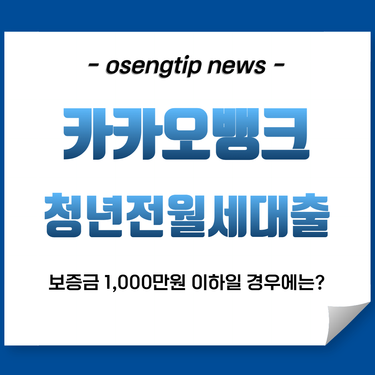 카카오뱅크 청년월세보증금대출 보증금 1000만원 이하일 경우